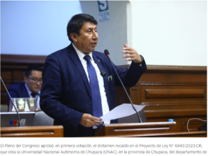 En la Universidad de Chupaca Vladimir Cerrón El 18 de abril del 2024 el Congreso de la República aprobó por